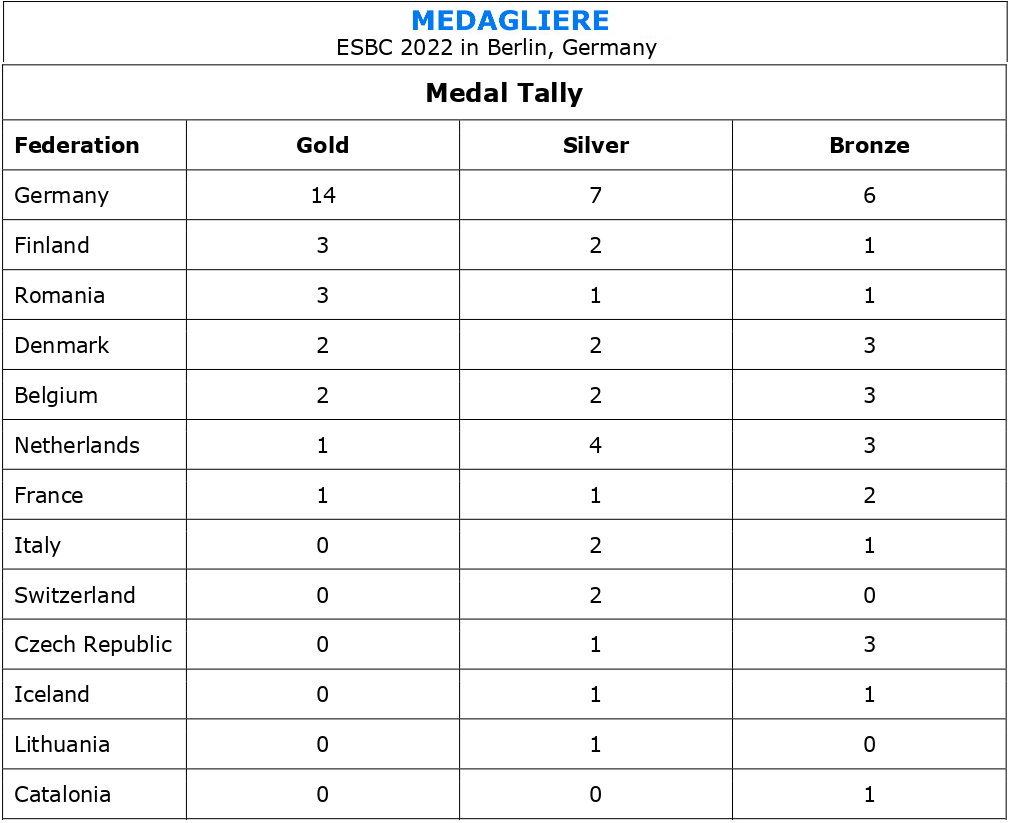 | 2022 | Berlino - ESBC | Partecipanti | Doppio C 3. | Tris 2. | ||||||||||||||||||