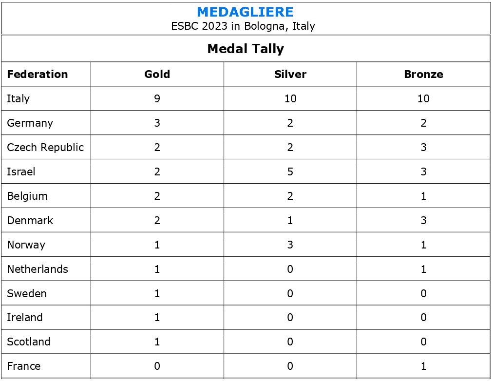 2023 | Bologna - ESBC | Singolo A 1.2.3. | Singolo B 2. | Singolo C 2. | Doppio A 1. 2. | Tris 1. 2. 3. | ||||||||||||||||