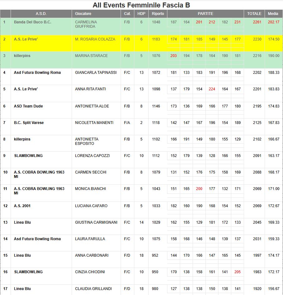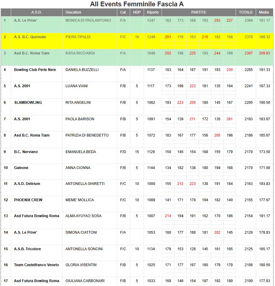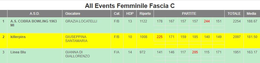 Anno | Fascia | 1^ Classificata all'Events Femminile | Solo i primi | Solo i primi |