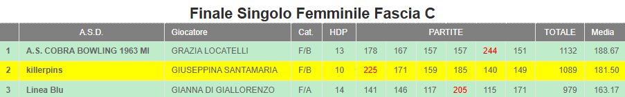 Anno | Sede | 1^ Classificata Singolo Femminile "C" | 2^ Classificata Singolo Femminile "C" | 3^ Classificata Singolo Femminile "C" |