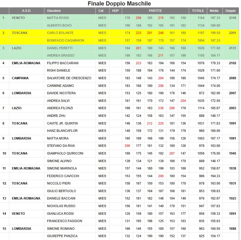 Anno | Note | 1^ Doppio Esordienti Maschile | 2^ Doppio Esordienti Maschile | 3^ Doppio Esordienti Maschile |
