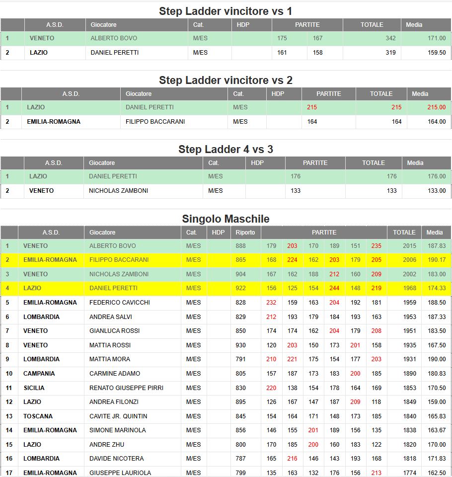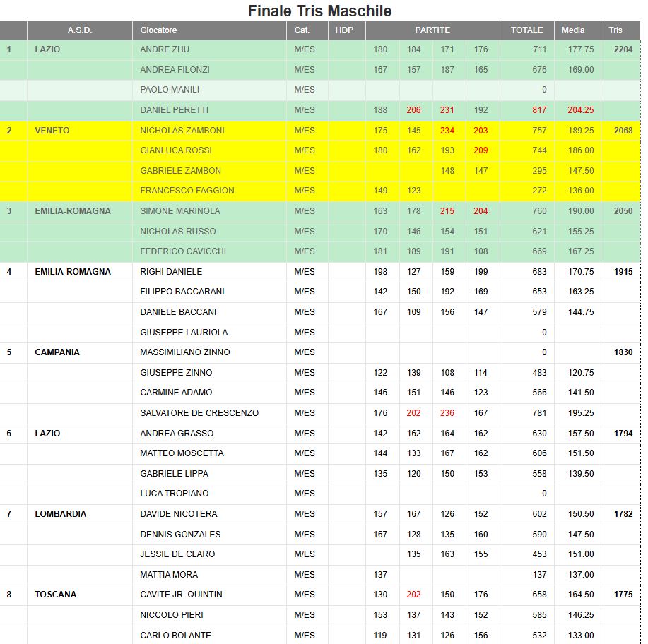 Eventuali errori o risultati mancanti scrivere a: