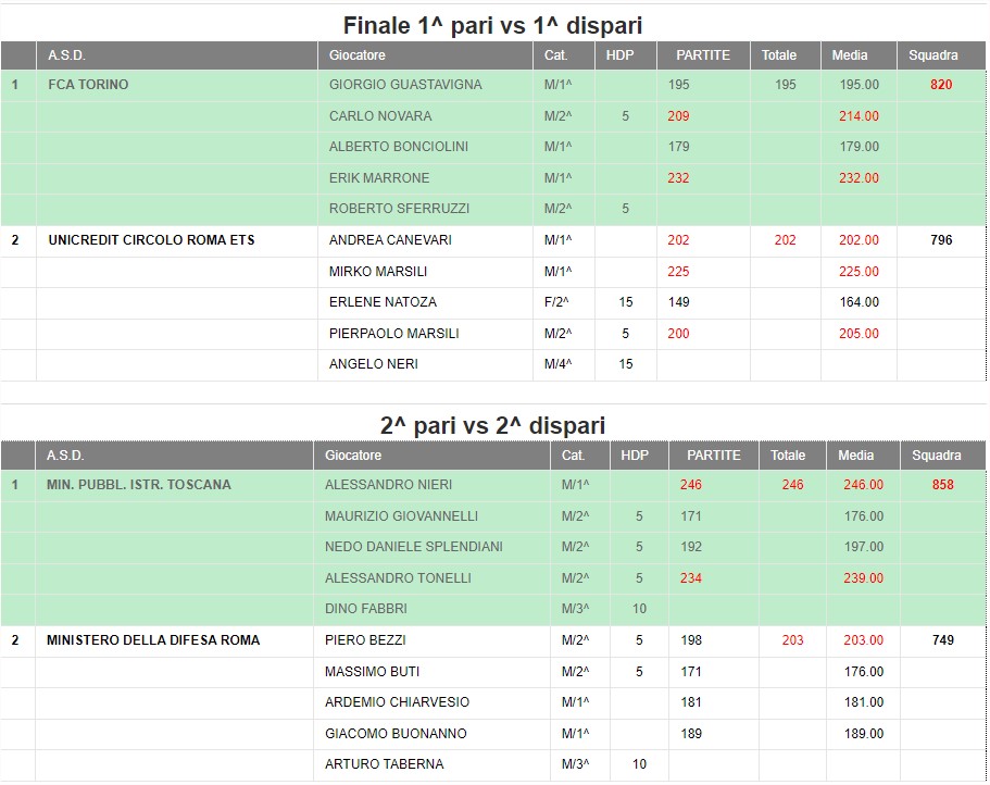 2014 43^ | Casalecchio | Fiat Group di Torino | RAI Italia Roma | Circolo Gruppo Hera di Bologna | |||